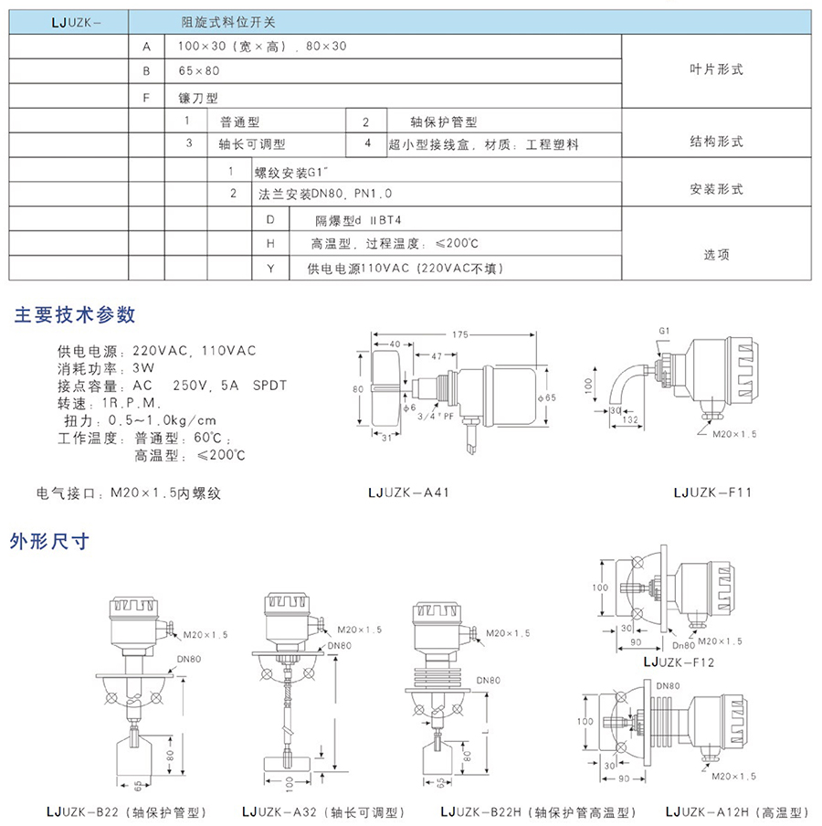 LJ-UZK型阻旋式料位開關(guān)